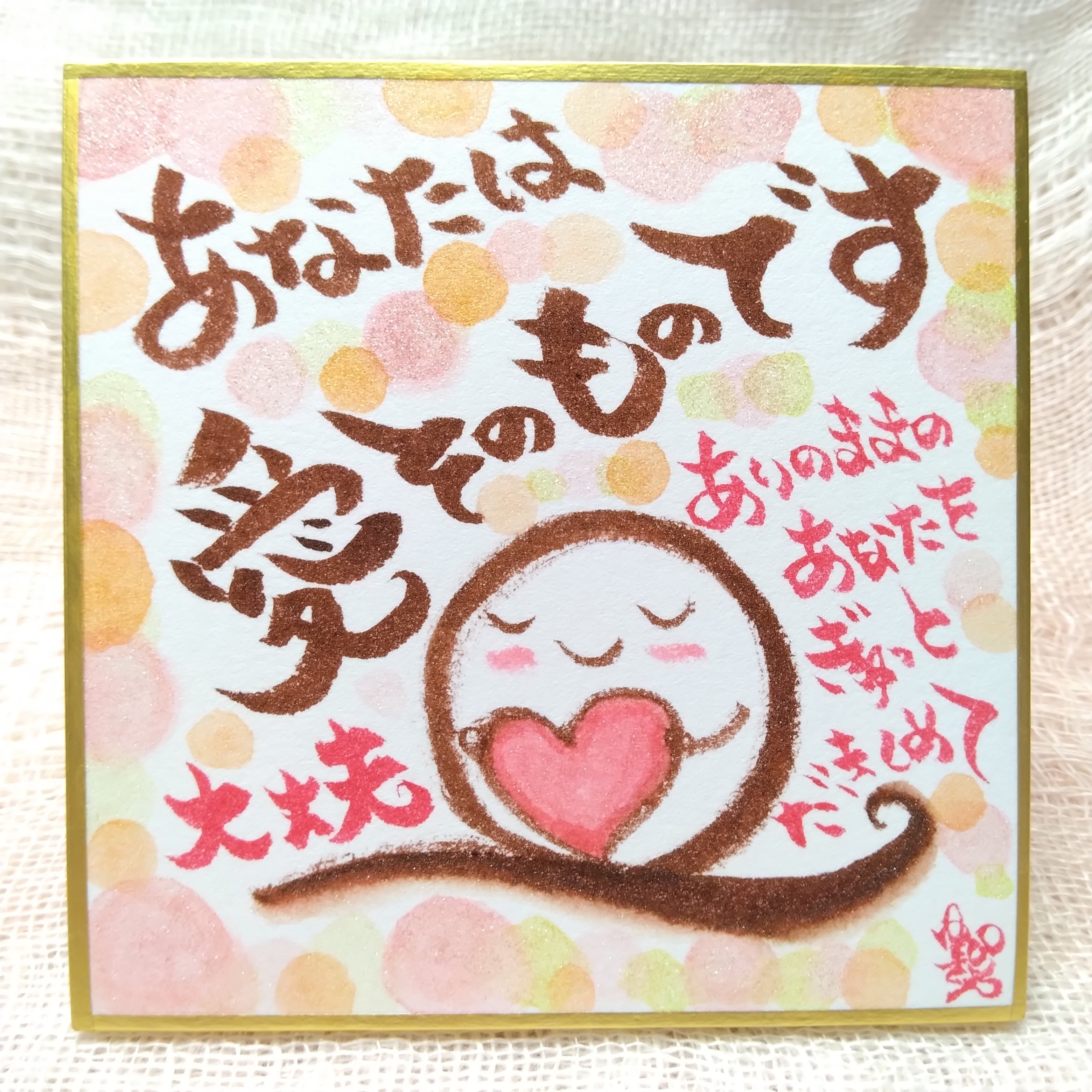 豆色紙┃原画・一点もの┃水彩【あなたは愛そのものです。ありのままのあなたを ぎゅっと抱きしめて。大丈夫。】