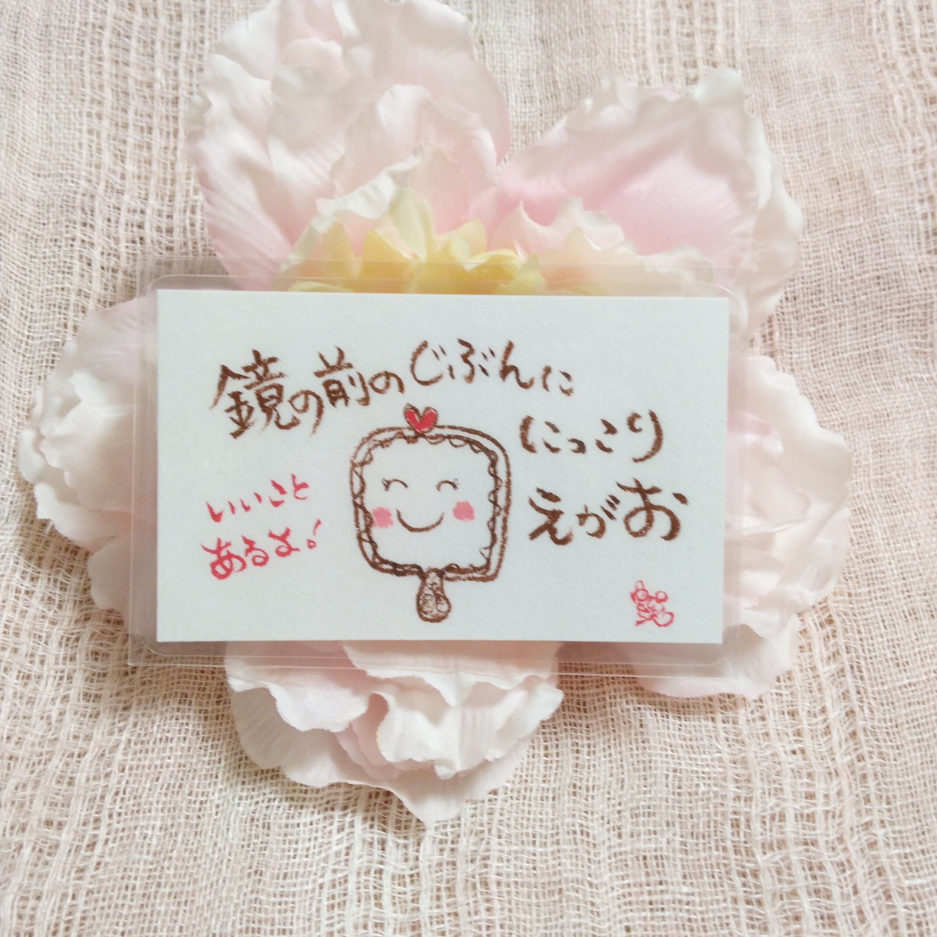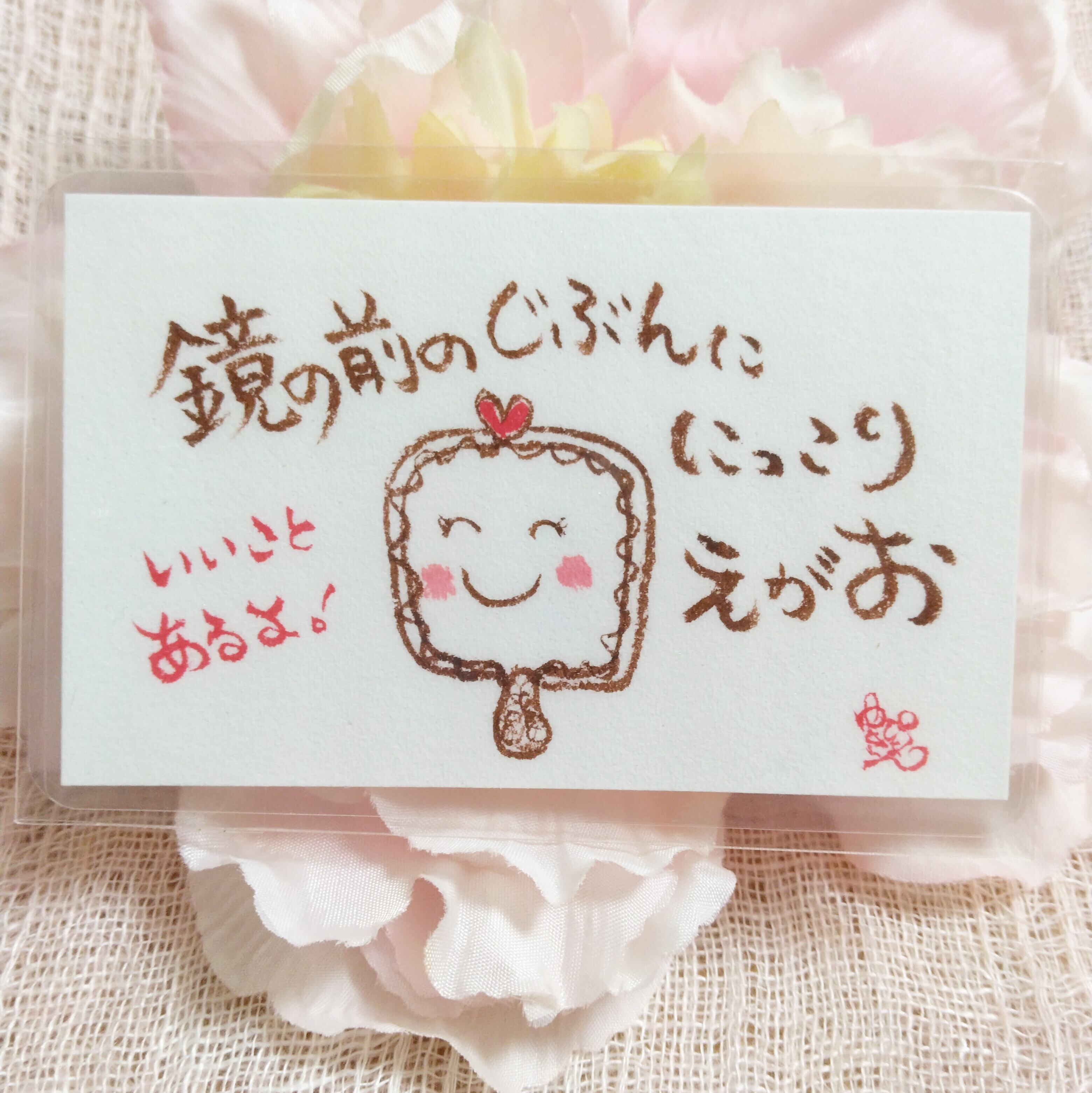 【鏡の前のじぶんに にっこり えがお。いいことあるよ!】名刺サイズ ラミネート加工 原画 一点もの