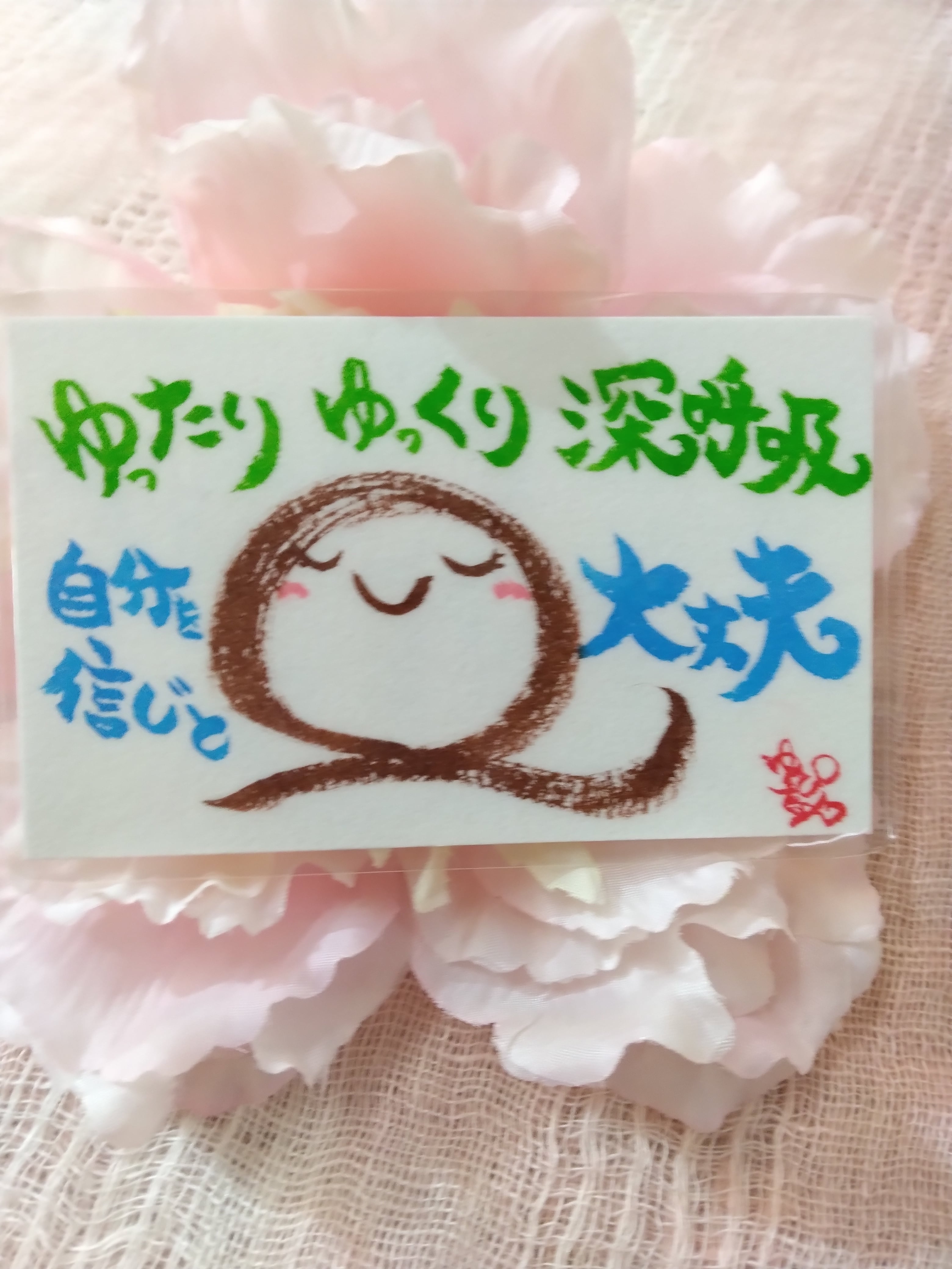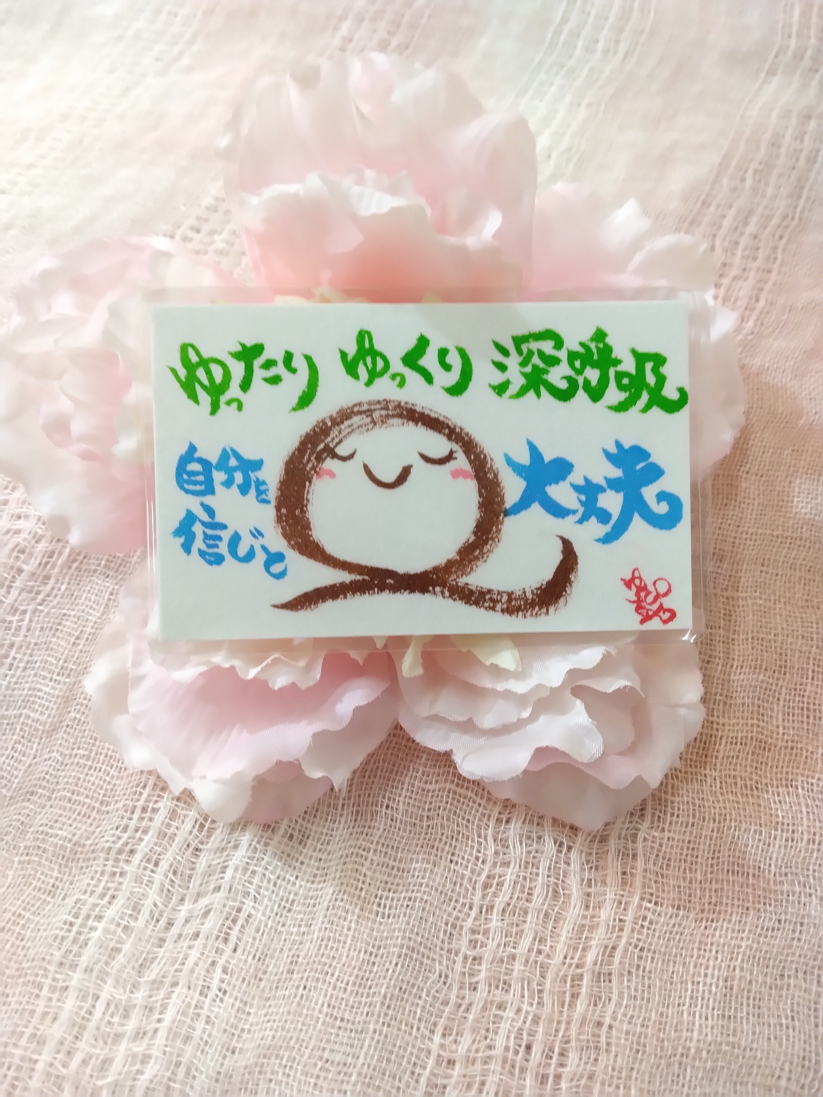 【私はできる!ゆったりゆっくり深呼吸。自分を信じて。大丈夫。】両面デザイン 名刺サイズ 原画 ラミネート加工
