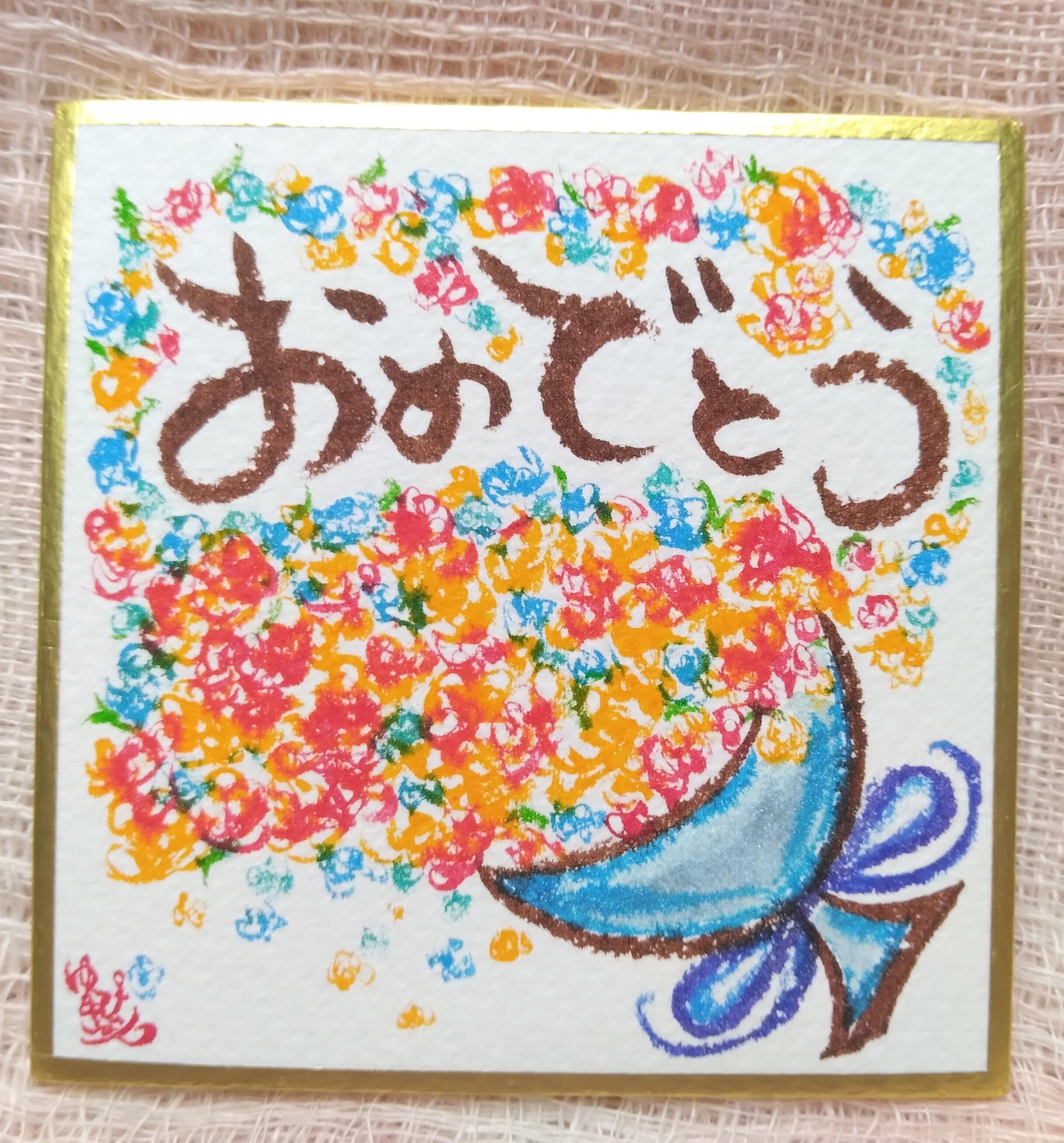 豆色紙┃原画・一点もの┃水彩【おめでとう】